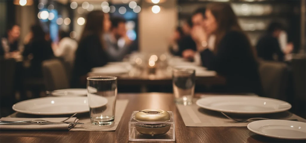 Se trata de un sistema inalámbrico que permite a los clientes avisar al camarero con solo pulsar un botón, enviando una notificación directa al personal del local para que acuda a la mesa o zona donde se necesita atención.