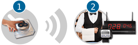 El cliente pulsa el botón situado en la mesa, terraza o zona del local.